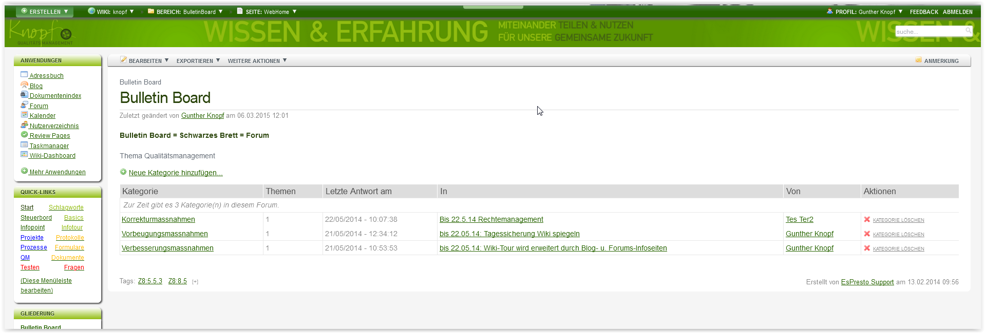 - Nachrichten untereinander Kollegen, Gruppen (Prozesse, Projekte, Standorte), Unternehmen (standortübergreifend)