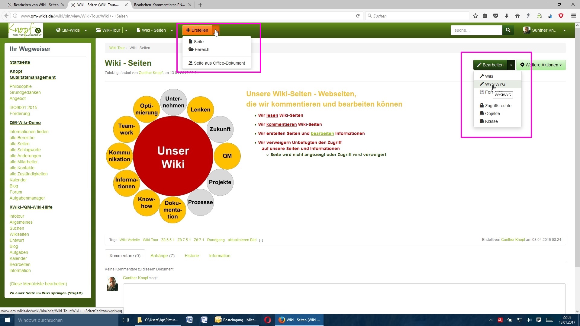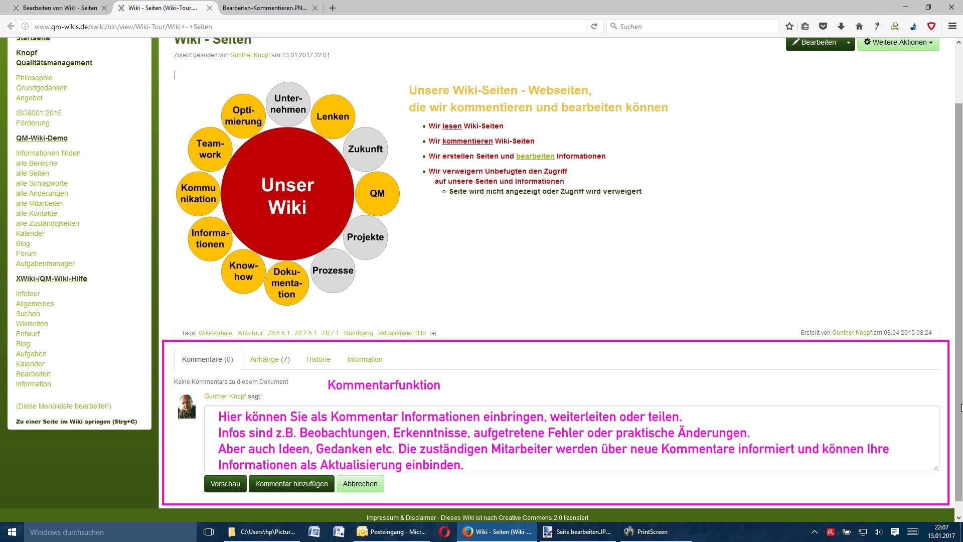 Unsere Wiki-Seiten - Webseiten, die wir kommentieren und bearbeiten können
